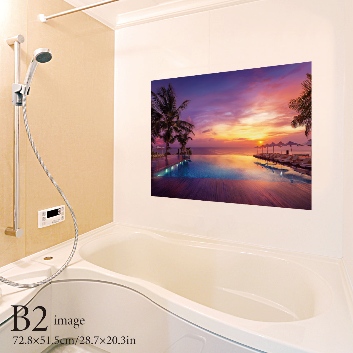〈お風呂ポスター専門小さなオアシスでは癒やしのお風呂ポスターが勢揃い。富士山から世界遺産、美しい風景、当店オリジナルの銭湯画など150種類以上の絵柄をご用意!自分で撮影した写真やイラストで作成出来るオリジナルお風呂ポスターも作成可能!3種類のサイズと用途に合わせた2種類の素材からお選びできます。また、防水なので湿気に強く、2層構造の頑丈で丈夫な素材なのでお風呂以外にも室内でのインテリアポスターとしてもご利用いただけます。〉